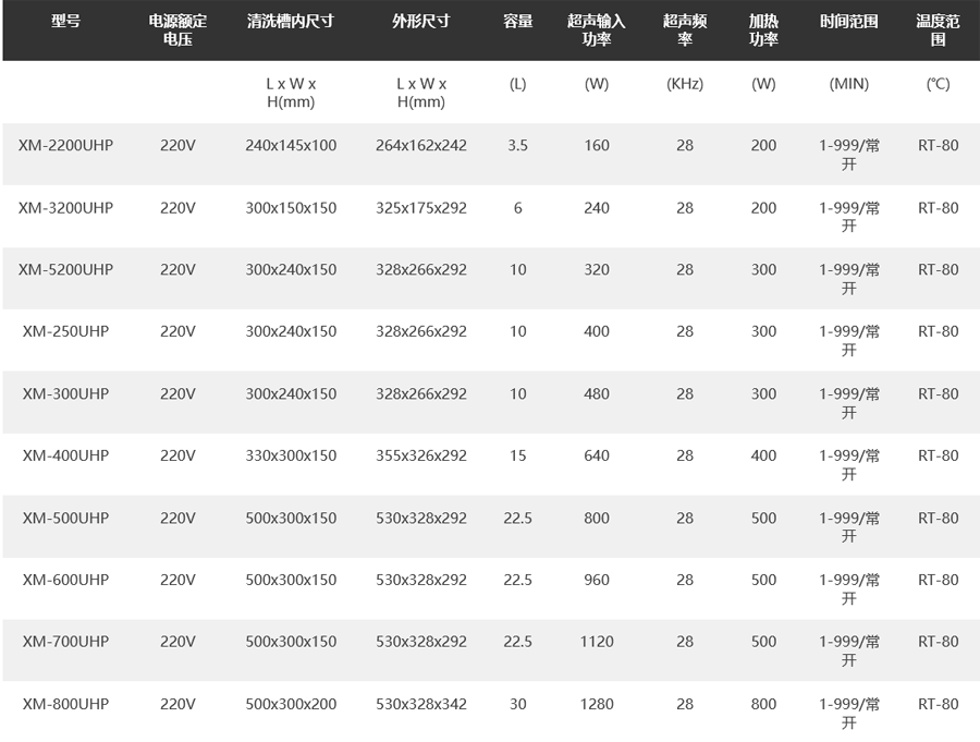 超聲波清洗機(jī)規(guī)格參數(shù):